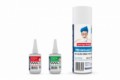 Sada dvou 50g vteřinových lepidel (řídké, střední) optimalizovaných pro lepení pneumatik RC aut a 200ml aktivátoru.