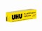 Lepí porcelán, dřevo, kovy, sklo, keramika, plexisklo, plsť, kůže, korek, textil, kartón, papír – UHU univerzální lepidlo lepí prostě všechno. Nevhodné na pěnový polystyren, PP a PE.